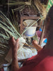 Piezas tejidas a mano por artesanas de diferentes comunidades en México. Cada pieza es única, hecha con fibras naturales y posee la cultura y conocimientos de la artesana que la creó.
